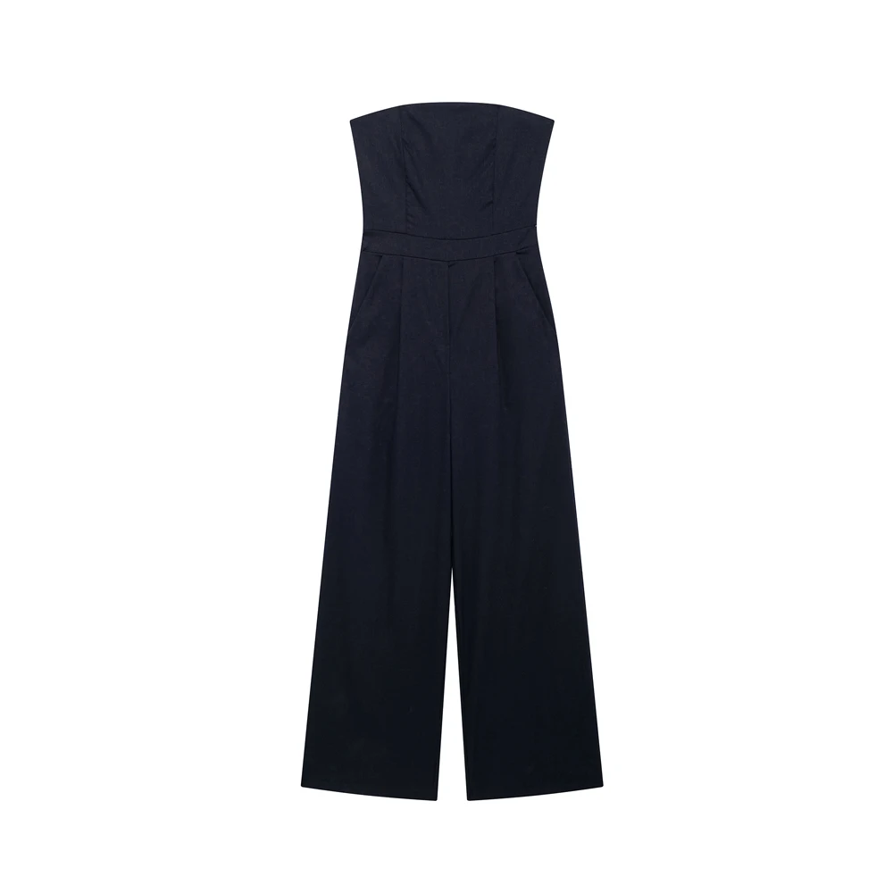 - Evening Events: For evening or semi-formal occasions, tailored wide-leg jumpsuits elevate linen into a sophisticated choice. High-waist or cinched waist designs create a flattering silhouette, while pairing with wedges, statement earrings, and a clutch completes a polished, elegant ensemble. This makes strapless linen jumpsuits perfect for summer dinners, garden parties, or outdoor soirées.